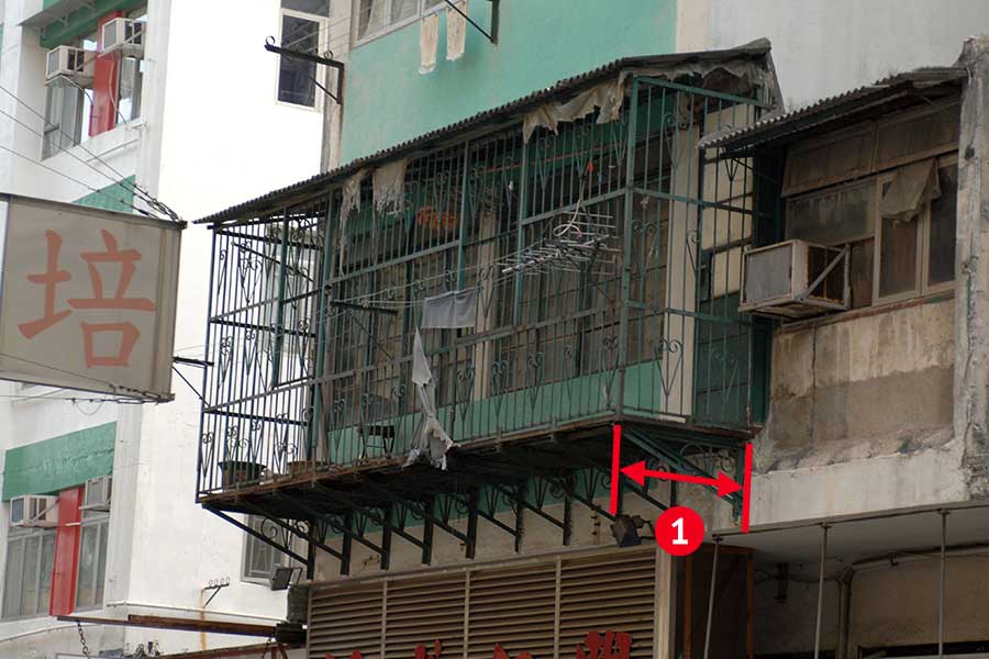 | If the structure is fixed to a balcony or canopy that is a cantilevered slab, the span of the balcony or canopy | Not more than 1m |