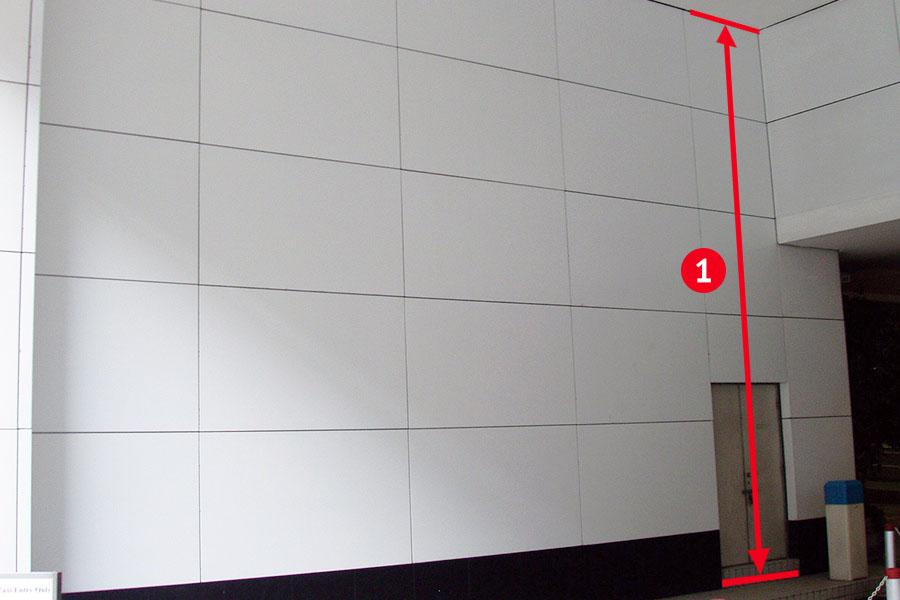 - Panels fixed by metal dowels and fixings onto a wall inside a building