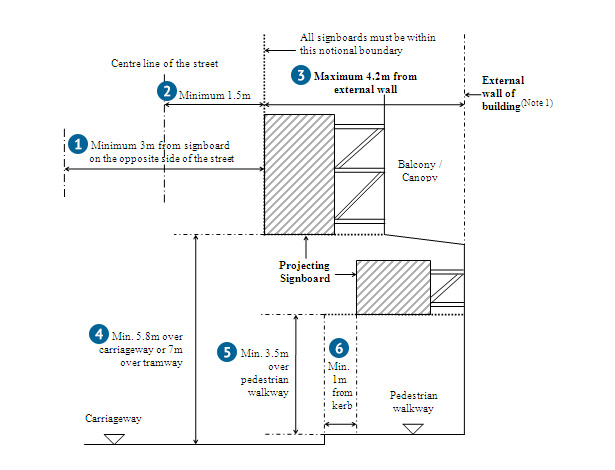 Note 1: Please refer to PNAP APP-126 for interpretation of external wall for the purpose of signboards