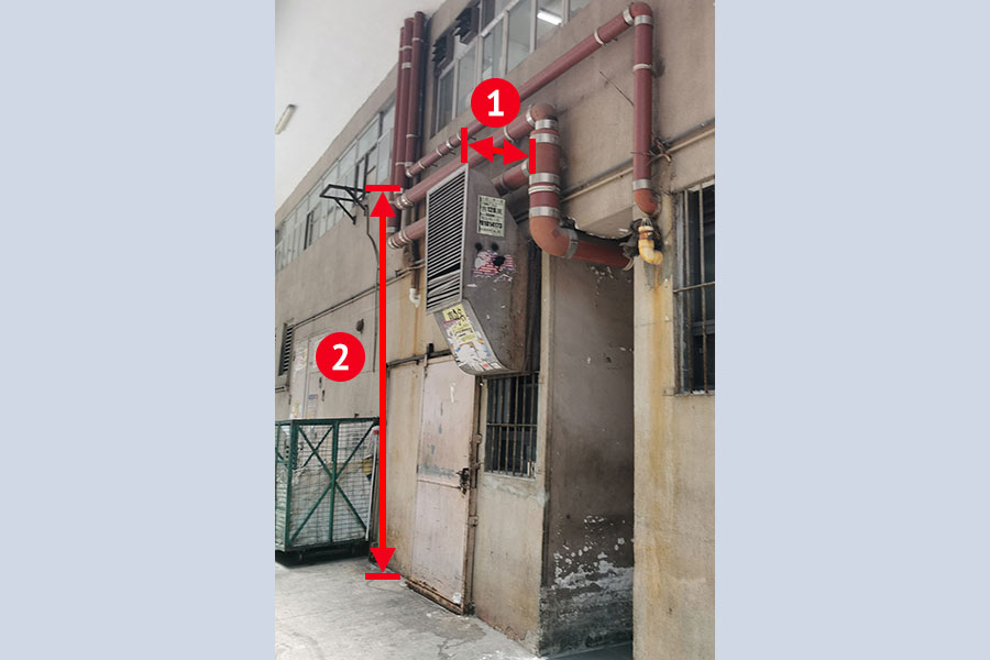 | 若该管道或支架自建筑物外墙伸出,伸出该外墙 | 不超过750毫米 |