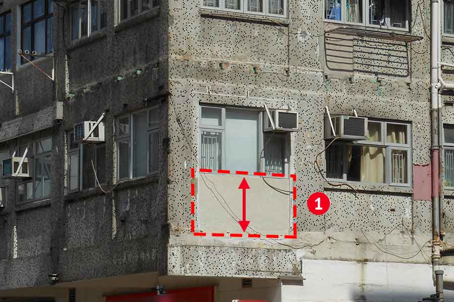 - 如有2个或多于2个洞口的墙壁,每个洞口之间的距离